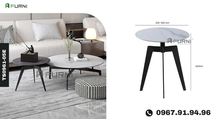 Bên cạnh việc sử dụng sản phẩm như một chiếc bàn góc sofa nhỏ gọn, bạn có thể kết hợp thêm với mẫu bàn sofa mặt đá TS0961-08E để tăng diện tích sử dụng đồng thời tạo điểm nhấn độc đáo cho không gian phòng khách gia đình, sảnh tiếp khách của showroom, salon, studio, spa, thẩm mỹ viện, …
