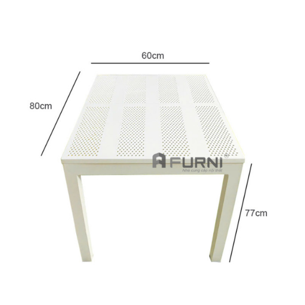 Bàn nhà hàng ngoài trời mặt nhựa là lựa chọn được nhiều nhà hàng, quán café và khu tiệc ưu tiên nhờ độ bền cao, kiểu dáng gọn gàng và dễ sử dụng. Tại Nội thất Furni, bàn ăn ngoài trời nhỏ gọn TN10001-08S với khung sắt sơn tĩnh điện kết hợp mặt nhựa có lỗ thoát nước mang đến giải pháp tối ưu cho các không gian ngoài trời hiện đại.
