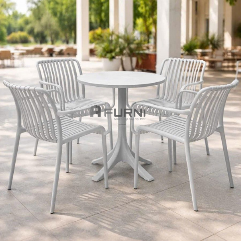 Bộ bàn cafe ban công nhựa đúc là lựa chọn lý tưởng cho căn hộ chung cư, nhà phố hoặc quán cafe nhỏ. Thiết kế gọn nhẹ, màu sắc tinh tế và khả năng chịu thời tiết tốt giúp bộ bàn ghế TE1550-65S/CC1580-S vừa đảm bảo thẩm mỹ vừa đáp ứng nhu cầu sử dụng lâu dài.