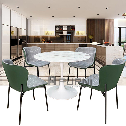 Bộ bàn phòng ăn tròn 1m mặt kính vân đá chân sắt sơn TE TULIP 2-10G3 ECO hiện đại TpHCM