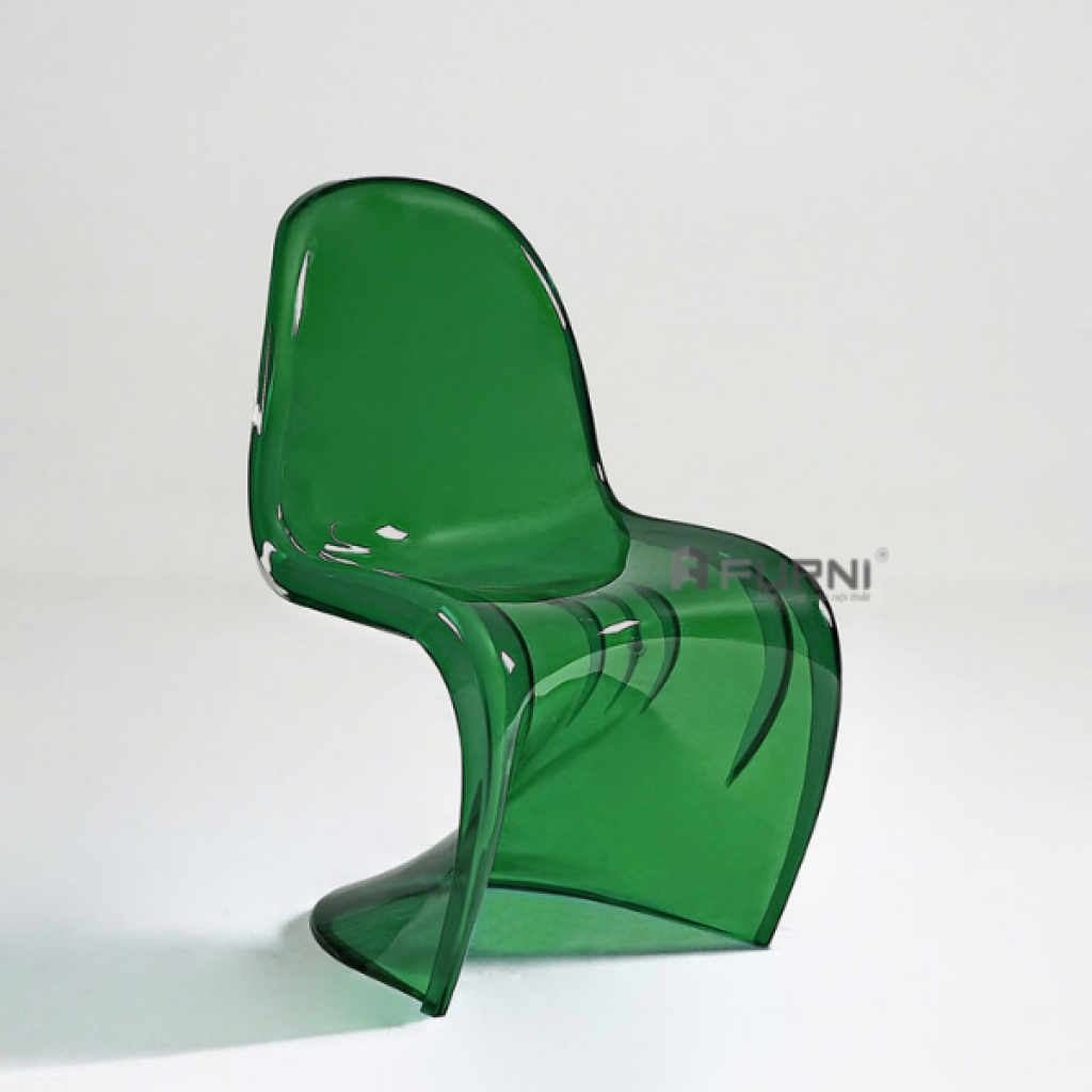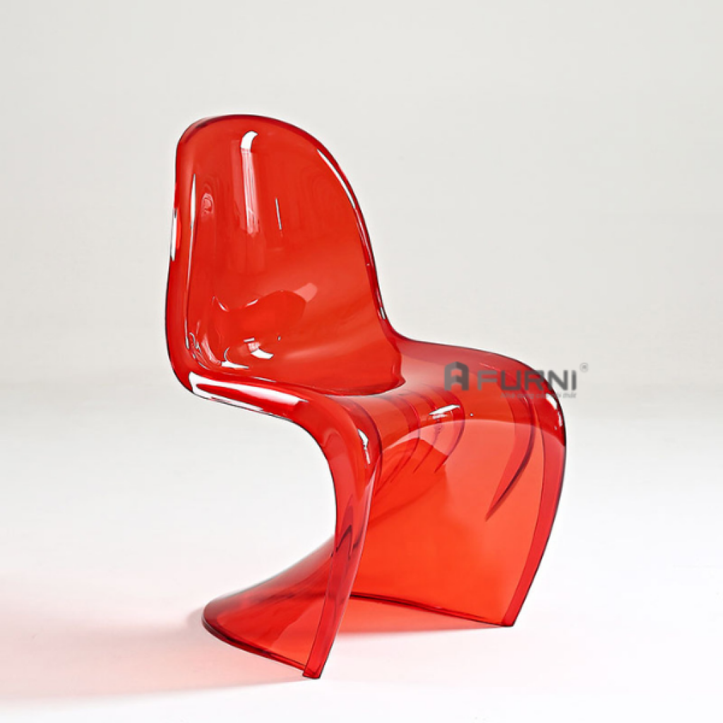 Ghế nhựa trong suốt Panton-PC với thiết kế hình chữ S, thể hiện một tác phẩm nghệ thuật với đường cong mềm mại và hình dạng đặc biệt. Điểm mạnh của ghế không chỉ đẹp mắt mà còn có khả năng xếp chồng, giúp tiết kiệm không gian.