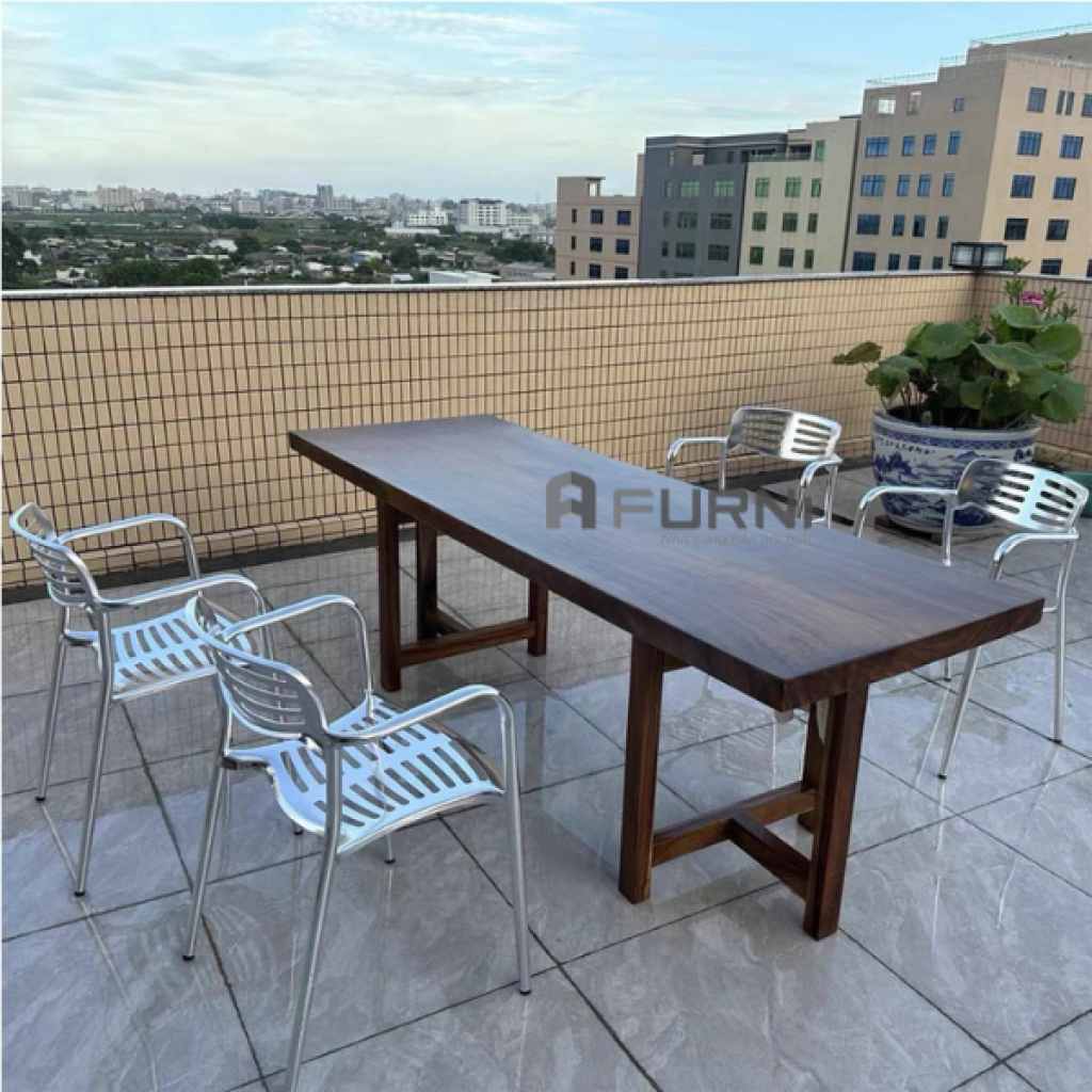 Ghế cafe ngoài trời CC07001-A có kiểu dáng thanh thoát, phần tựa lưng và mặt ngồi có các khe thoáng khí giúp tạo cảm giác thoải mái khi sử dụng, đặc biệt thích hợp cho không gian ngoài trời. Tay vịn bo tròn mềm mại tạo điểm nhấn và giúp người ngồi dễ chịu hơn.