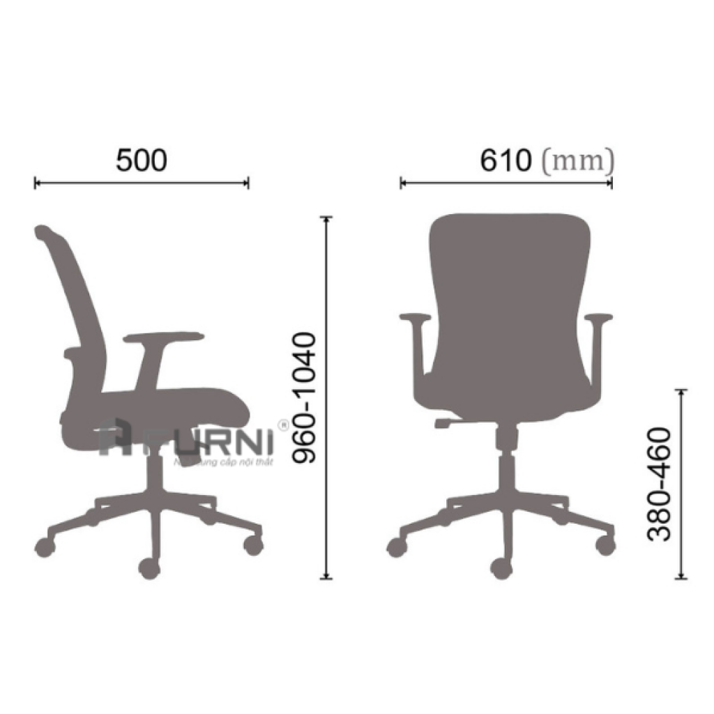 Chất liệu: Khung nhựa, lưng lưới, nệm vải lưới, chân thép mạ chrome